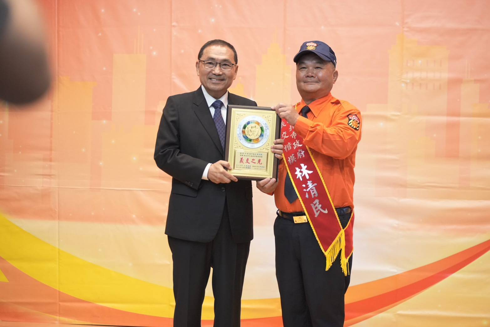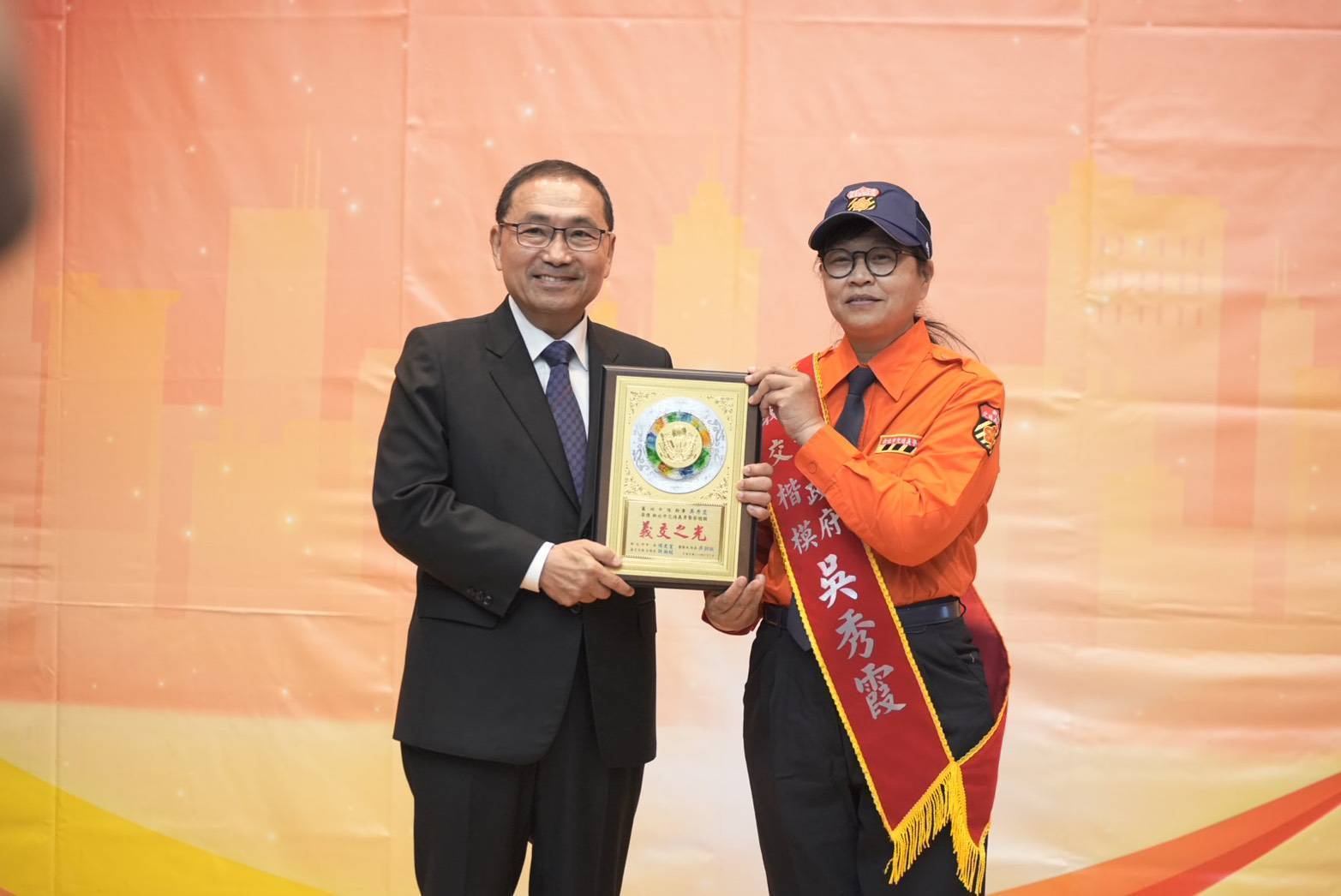 新北市侯市長重視感念義交協勤民力夥伴的無私付出,特於今(7)日上午10時15分假市政府5樓會議室,出席「新北市政府義交楷模人員表揚大會」,表揚績優義交人員;35位獲獎的義交楷模對維護本市交通工作有特殊貢獻或優良事蹟而獲此殊榮;本次大會特別邀請義交大隊大隊長許湘鋐、警察局局長及各義交中隊長、各分局分局長等貴賓一同觀禮祝賀,侯市長在頒獎後也逐一與35位獲獎義交楷模及其家人合影留念,頒獎典禮過程溫馨感人,讓義交們留下了美好回憶。