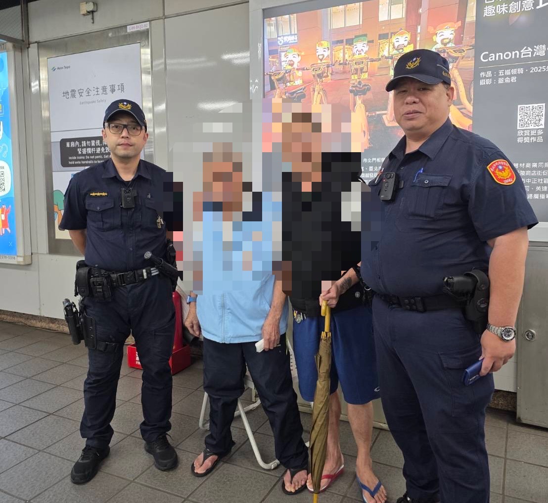 日前捷運警察隊第二分隊警員黃宗顏、黃勇傑擔服巡邏勤務時,於捷運古亭站發現一名老翁不斷徒手拍打出站閘門,起初以為是票卡感應異常所致,遂主動上前關心協助。然老翁言語反覆、無法清楚表達住家地址及欲前往地點,身上亦未攜帶證件或票卡,疑似有失智迷途情形。