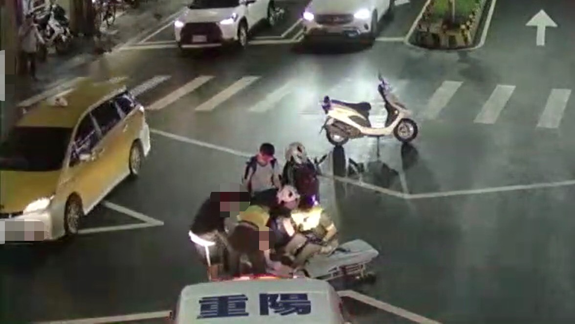 日前晚間8時許,新北市警三重分局員警陳思帆下班後,剛從派出所騎機車回家途中,正當他在中央北路與重新路口停等紅燈時,發現眼前民眾牽著88歲母親穿越馬路,突然之間,老婦人跌倒在路中間。而因當時正逢周末,路口車流量較大,員警陳思帆深怕後續有事故發生,立即先以機車擋住民眾跌倒的位置,以防後方車輛追撞,並撥打119及派出所電話通知消防及所內巡邏同事紀柏廷到場協助查證身分及指揮交通。