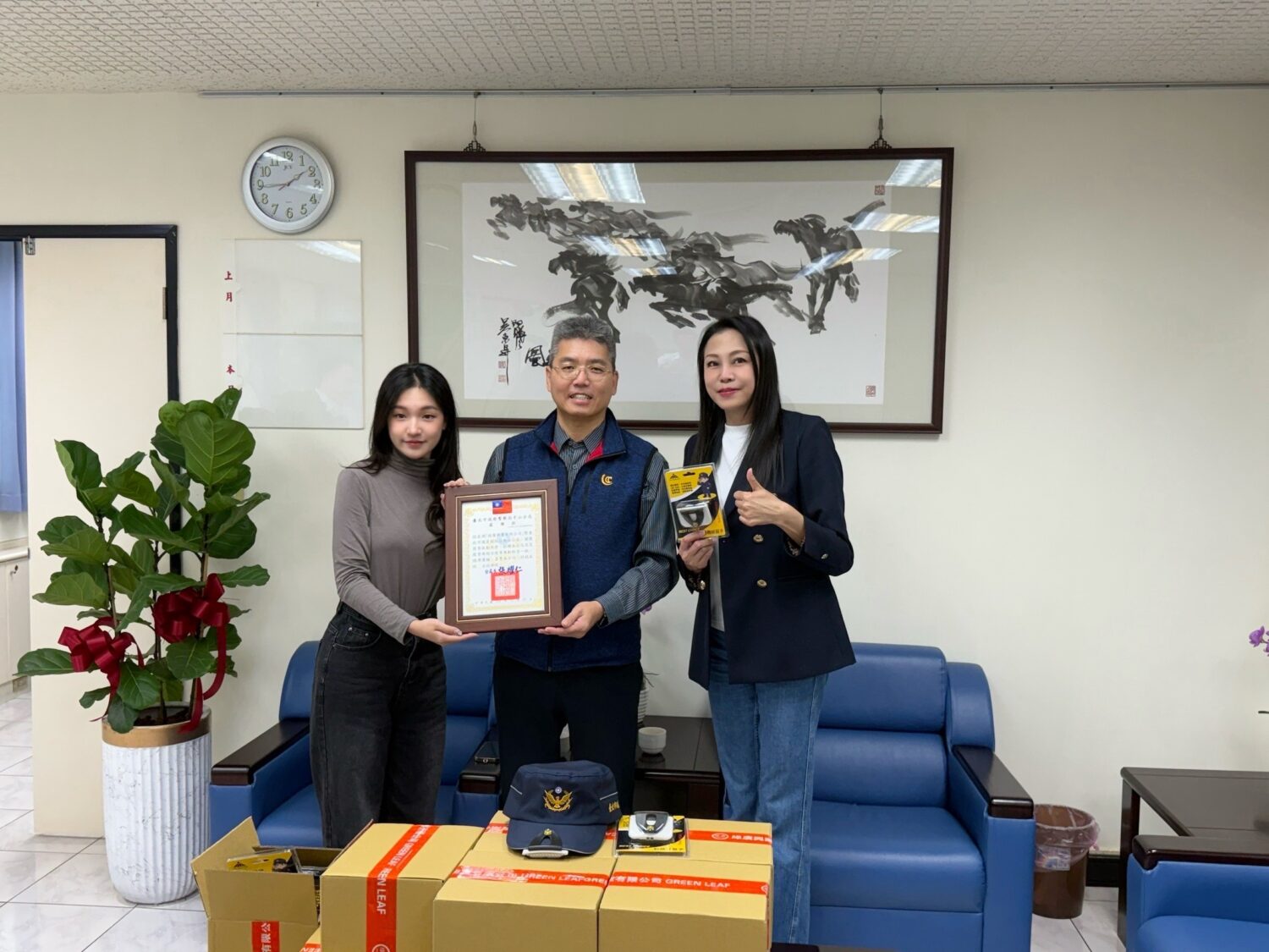 闕枚莎議員則表示,此次捐贈是「青年公益力」的最佳展現,年輕人願意投入社會服務,是推動治安與社會共好的重要力量。她期盼能透過這樣的善舉,帶動更多企業、民眾關注警察執勤安全,一起打造更加友善、安心的城市環境。
