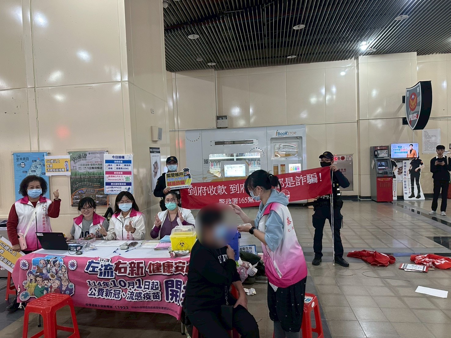 鐵路七堵派出所亦把握人潮聚集時機,巡佐朱富民與警員林昱廷到現場,加強犯罪預防及交通安全宣導,提醒民眾注意扒竊、詐騙及月台安全事項,讓健康防護與財產安全雙管齊下。