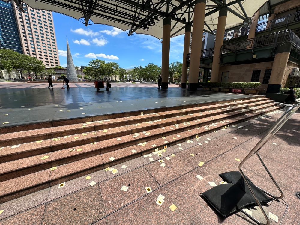 據了解,陳姓男子16日犯案地點是於南大門,此次則在北大門及市民廣場舞台區,坦承因精神狀況不佳,才攜帶油漆及冥紙至市府潑漆及撒冥紙。