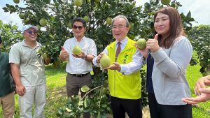 正值文旦產季,農糧署大力拓展文旦外銷市場有成,將於9月21日出口台灣文旦到日本茨城縣笠間市、八千代町及石岡市等9個銷售點、38所學校,預計有9,500位日本老師與學生的營養午餐都可以吃到台灣優質產銷履歷文旦!這也是睽違20年之後,文旦再次進入日本市場,為此,農糧署特別舉辦「臺灣文旦輸日行銷記者會」由農糧署署長胡忠一主持,立法委員劉建國、雲林縣議員張維崢也到場致意。