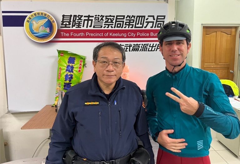 美籍騎士單車環台照明失靈 | 暖警熱心協助