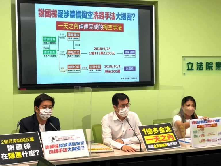 圖片說明:民進黨立法院黨團針對國民黨基隆巿長參選人謝國樑涉入淘空洗錢案召開記者會。(圖/蔡適應國會辦公室提供)