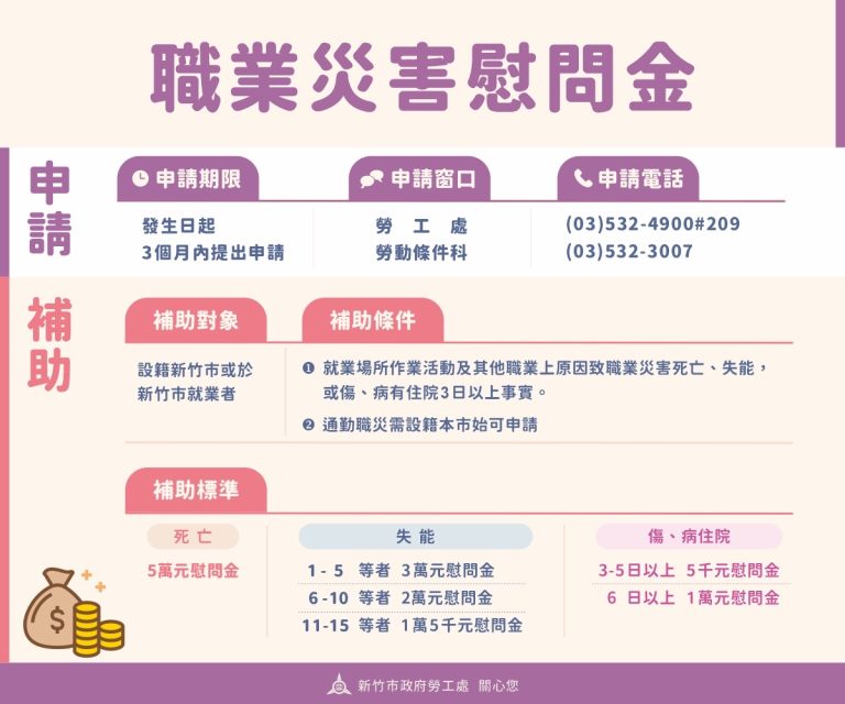 竹市提高職災慰問金補助丨高市長:提供勞工急難家庭更多協助