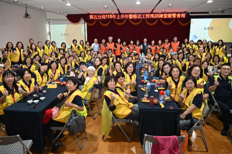 為提升志工專業知能並關懷其身心健康,臺中市政府警察局第五分局於114年4月14日舉辦「警察志工特殊訓練暨聯繫會報」,吸引約130名志工夥伴熱情參與。活動一改以往偏重制度與勤務的傳統訓練模式,特別融入「植感療癒」主題,從健康檢測到心理紓壓,規劃一系列全方位課程,讓長期投入治安協勤工作的志工們得以放鬆身心、重新充電。