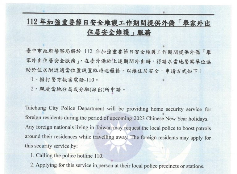 【警政時報 江雁武/台中報導】 因應春節假…